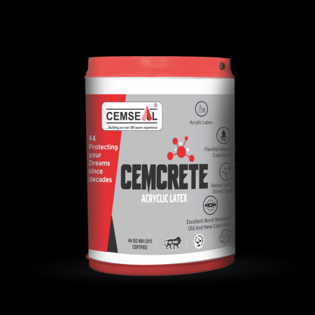 CEMCRETE is composed of acrylic co-polymer & additive. It is used as a bonding agent for new to old substrates as it provides strong bonds to old - new concrete. Moreover, it is used for acrylic based waterproofing solution as well for higher flexibility & UV resistance.
